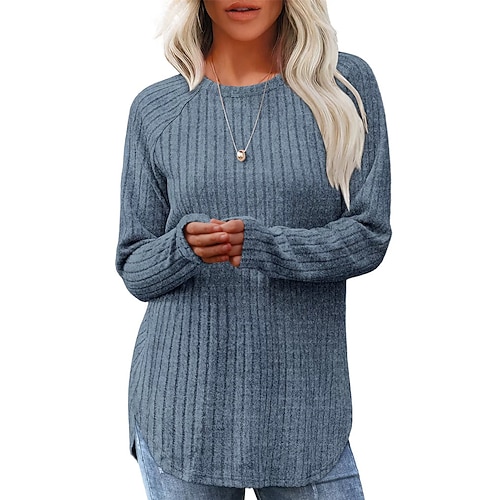 Per donna Felpa Maglione Quotidiano Elegante Casual Tinta unica A Coste Girocollo Lavorato a maglia Manica Lunga Top Regolari Maglia Quotidiano Ferie Uscire Nero Vino Autunno Inverno