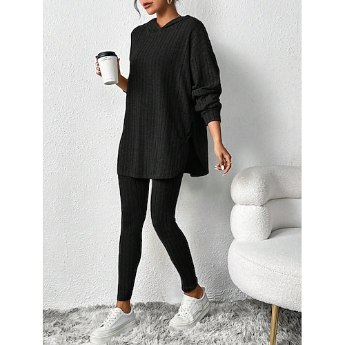 Per donna Moda Streetwear Set di Pantaloni Bolero Top Manica Lunga Con Cappuccio Tinta unica All'aperto Lavoro Casuale Nero Vino Verde militare Autunno Vestibilità regolare