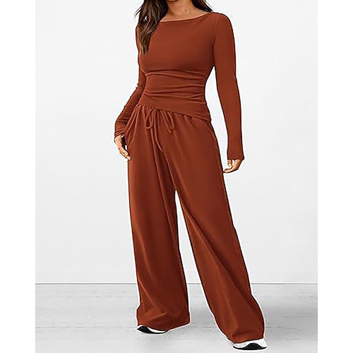 Per donna Elegante Attivo Streetwear Set di Pantaloni Bolero Top Manica Lunga Girocollo Semplice Coulisse All'aperto Vacanza Quotidiano Grigio scuro Nero Vino Autunno Vestibilità regolare