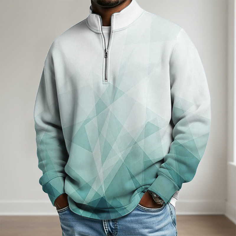 Men's Geometic Zip Polo Shirts Long Sleeve Polo Shirts Grandad Collar Casual School Athleisure Holiday Daily Wear 3D Print Quarter Zip Polo Spring Fall Blue Red Purple