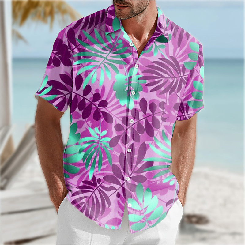 Men's Colorful Palm Leaf Tropical Plants Summer Hawaiian Shirt Button Up Shirt Aloha Shirt Short Sleeve Hawaiian Vacation Beach Wear Summer Spring Turndown 3D Print Collared Shirts Blue Purple Green