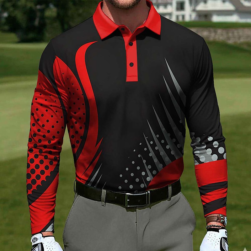 Men's Geometric Golf Sports Polo Shirts Long Sleeve Polo Shirts Lapel Casual Outdoor Athleisure Daily Wear 3D Print Buttons Spring Fall Blue Yellow Red