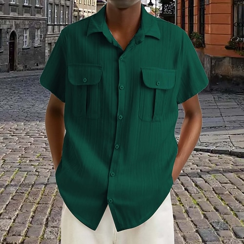 Per uomo Camicia Tessuto Camicia da lavoro Camicia Jacquard Marrone Scuro Nero Bianco Rosa Vino Manica Corta Semplice Bavero Quotidiano Vacanza Tasca Abbigliamento Streetwear Casual