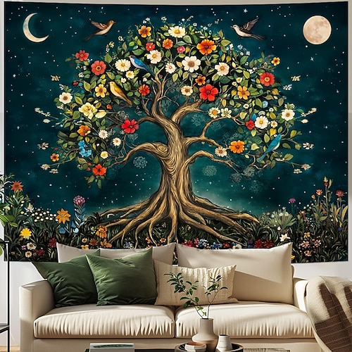 Baum des Lebens hängender Wandteppich Wandkunst großer Wandteppich Wanddekoration Fotohintergrund Decke Vorhänge Wohnraum Schlafzimmer Wohnzimmer Dekoration