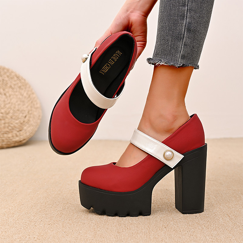 Women's Daily Chunky Heel Round Toe Fashion Faux Leather Ankle Strap Orange / Black Black Light Red