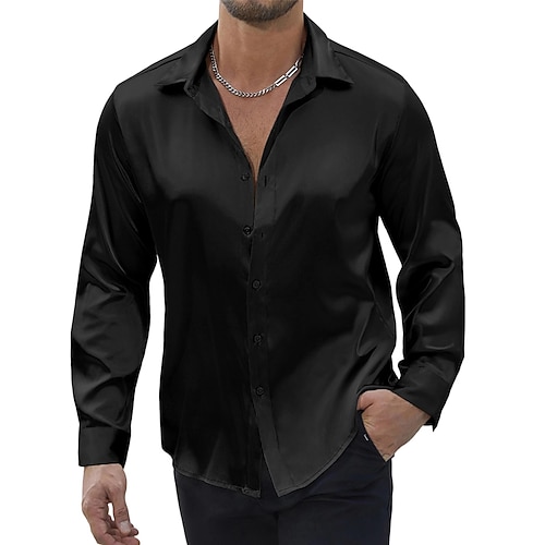 Per uomo Camicia Camicia in raso Camicia casual Camicia con Bottoni Camicie sbottonate Semplice Formale Quotidiano Nero Bianco Vino Blu reale Manica Lunga Bavero Primavera Autunno Tutte le stagioni