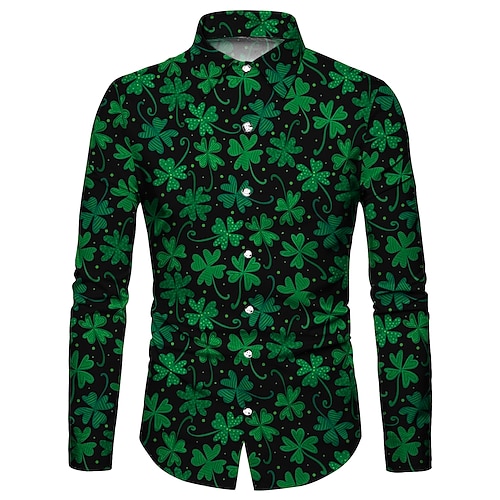 giorno di san patrizio quadrifoglio camicia casual da uomo abbigliamento quotidiano per uscire nel fine settimana autunno/autunno couverture maniche corte verde militare, blu, verde menta s, m, l