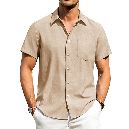 Per uomo Camicia Camicia di lino Camicia casual Camicia con Bottoni Camicia di cotone Semplice Vacanza Streetwear Nero Bianco Cachi Verde militare Manica Corta Collo ripiegato Estate Abbigliamento