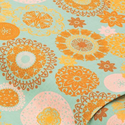 Tissu coton "mandala", turquoise/coloré, série "Mona"