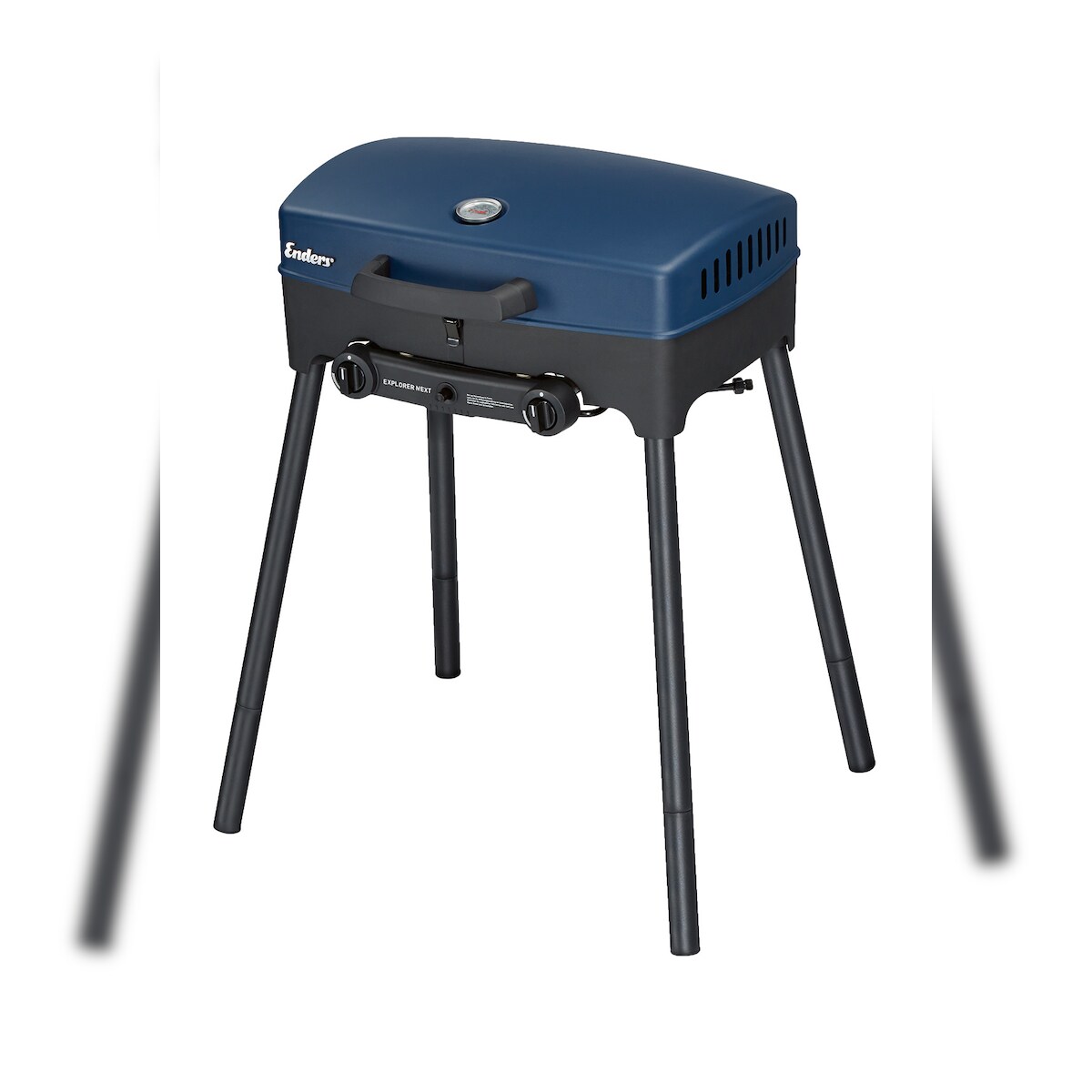 Enders Camping Gasgrill EXPLORER NEXT, Grillen, Kochen , Backen, 2 Brenner Edelstahl, kleiner Balkon-Picknick-Camping-Grill, Aluguss-Grillwanne #2103