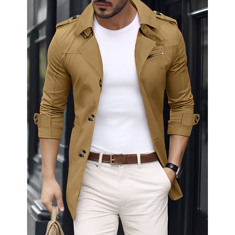 Men's Transition Jacket Trench Coat Going out Spring Fall Polyester Windbreaker Outerwear Clothing Apparel Streetwear Plain Turndown Single Breasted