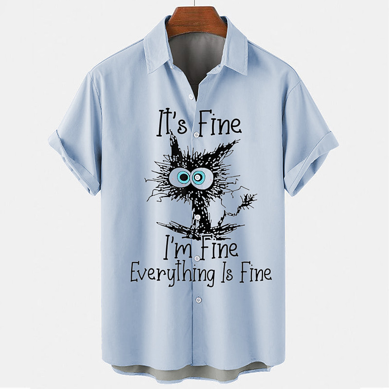 Men's Cat Casual Shirt Button Up Shirt Short Sleeve Casual Casual Summer Spring Turndown Button Up Pink Blue Beige