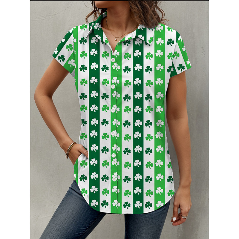 St. Patrick's Day Women's Shirt Graphic Shamrock Daily Short Sleeve Cap Sleeve Shirt Collar Long Tops Daily Green Summer Spring