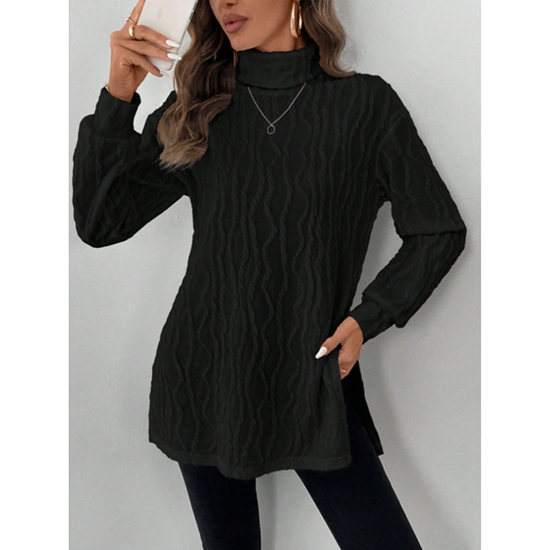 Women's Blouse Solid Color Stylish Casual Long Sleeve Turtleneck Long Tops Daily Ruched Black White Blue Spring Fall Winter