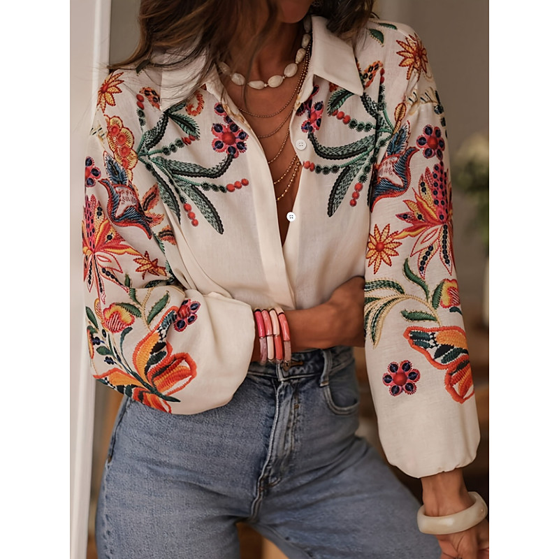Women's Blouse Floral Stylish Casual Long Sleeve Shirt Collar Regular Tops Daily Buttons Print White Spring Fall