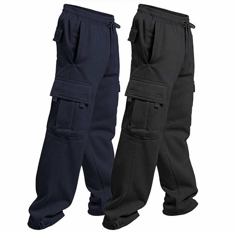 Multi Packs 2pcs Men's Navy BlueBlack Cargo Sweatpants Trousers Drawstring Elastic Waist Plain Vacation Daily Wear Polyester Spring