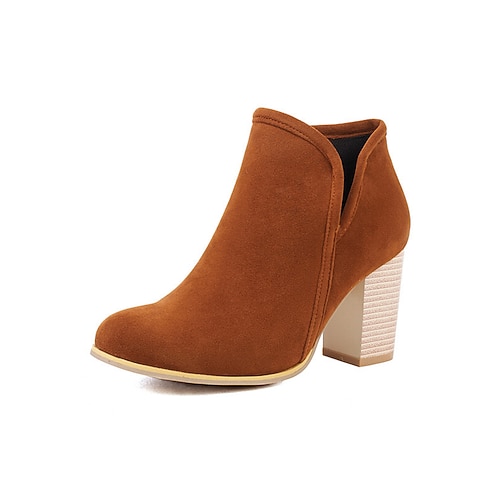 stivaletti da donna in finta pelle scamosciata marrone con tacco a blocco: eleganti stivali eleganti da indossare tutti i giorni