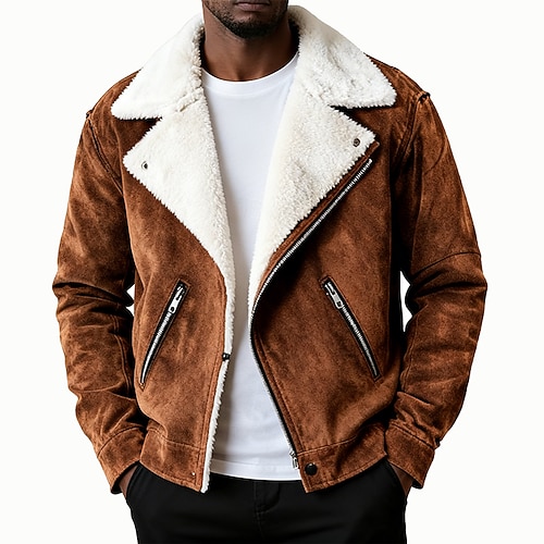Per uomo Cappotto Invernale Giacca in finta pelle scamosciata Giacca in Pile Giacca Casual Casuale Quotidiano Calore Termico Tasca Cerniera completa Autunno Inverno Tinta unica Streetwear Quotidiano
