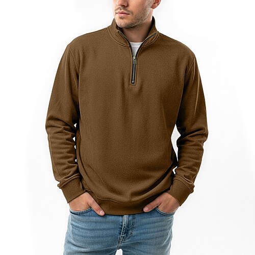 Felpa polo da uomo in finta pelle scamosciata con cerniera, per le vacanze, da strada, a maniche lunghe, alla moda, basic, tinta unita, semplice, autunno, primavera, autunno, tutte le stagioni,