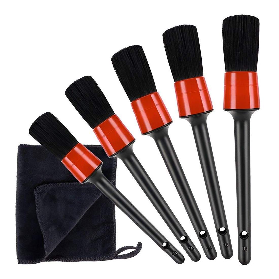 5 pyöreää yksityiskohtaharjaa plus liina - auton puhdistus