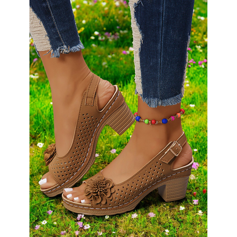 Women's Floral Cutout Slingback Sandals – Comfortable Chunky Heel Summer Sandals for Casual Garden Party Wear
