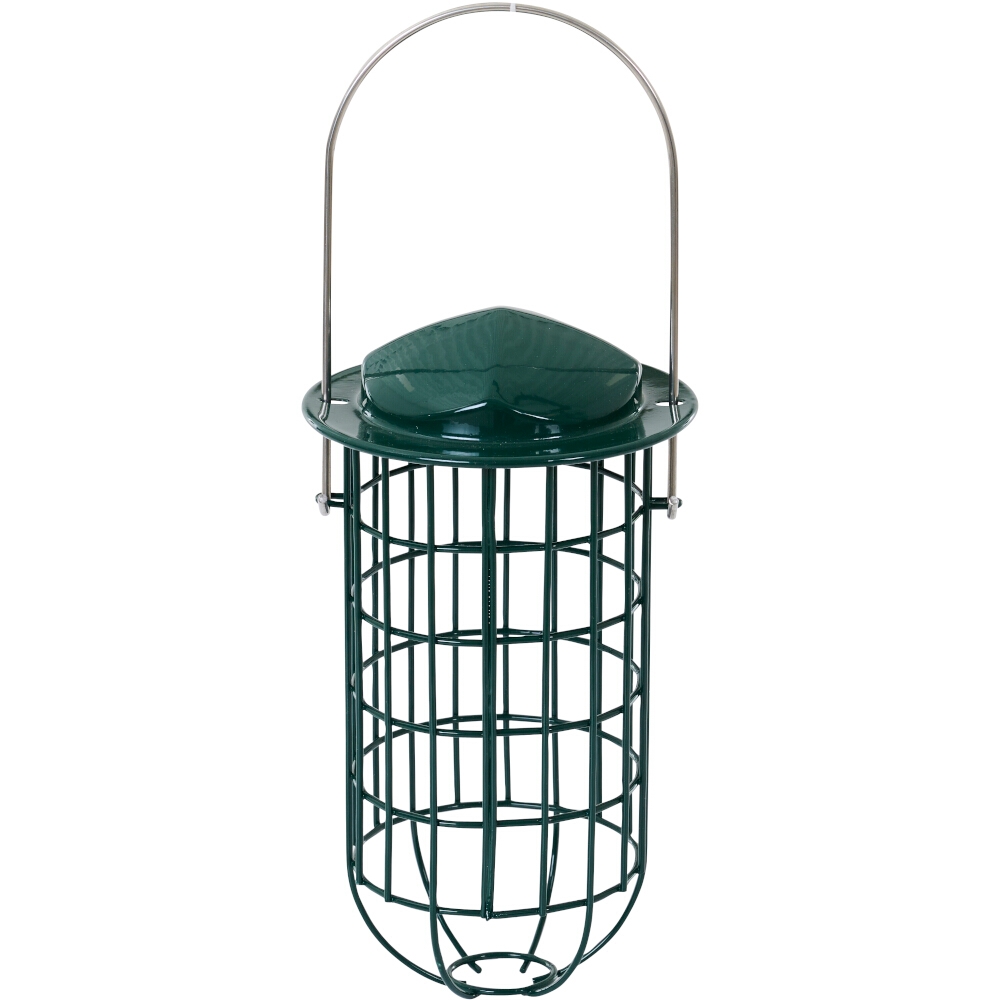 Siena Garden Futterspender 20 cm, Gehäuse und Dach aus Stahl pulverbeschichtet in grün, Aufhänger aus Edelstahl in silber