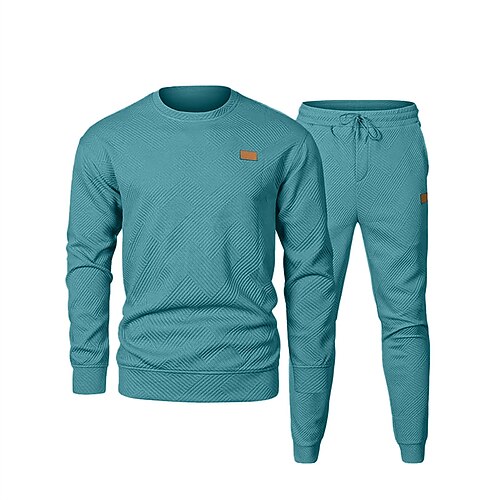 Per uomo Maglia Tuta da Ginnastica Set di abiti Girocollo All'aperto Quotidiano Sportivo Jacquard Coulisse Tasca Semplice azzurro cielo Nero Blu marino Poliestere Abbigliamento sportivo Moda