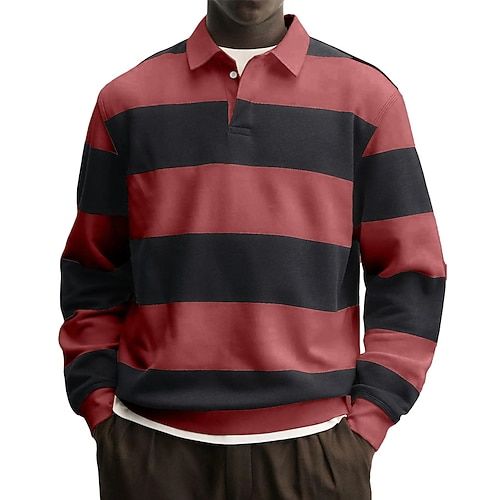 Per uomo Polo Maglia da golf Casuale Streetwear Bavero Manica Lunga Essenziale Moderno Strisce orizzontali Bottoni Primavera Autunno Vestibilità regolare Blu Grigio Bianco Rosso Blu marino Viola Polo