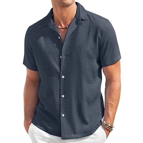 Per uomo Camicia Camicia Estiva Camicia casual Camicia da Spiaggia Camicia con Bottoni Blu Cachi chiaro Nero Bianco Blu marino scuro Manica Corta Tinta unica Bavero Casuale Quotidiano Abbigliamento