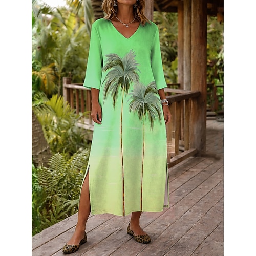 Per donna Abito maxi Abito Boho Abito a Tubino Vestito Estivo Abito in lino Bohemien Vacanza Etnico Spiaggia Ferie Data Vestibilità comoda Grafico Astratto Tropicale Manica 3/4 Scollo a V Blu Giallo