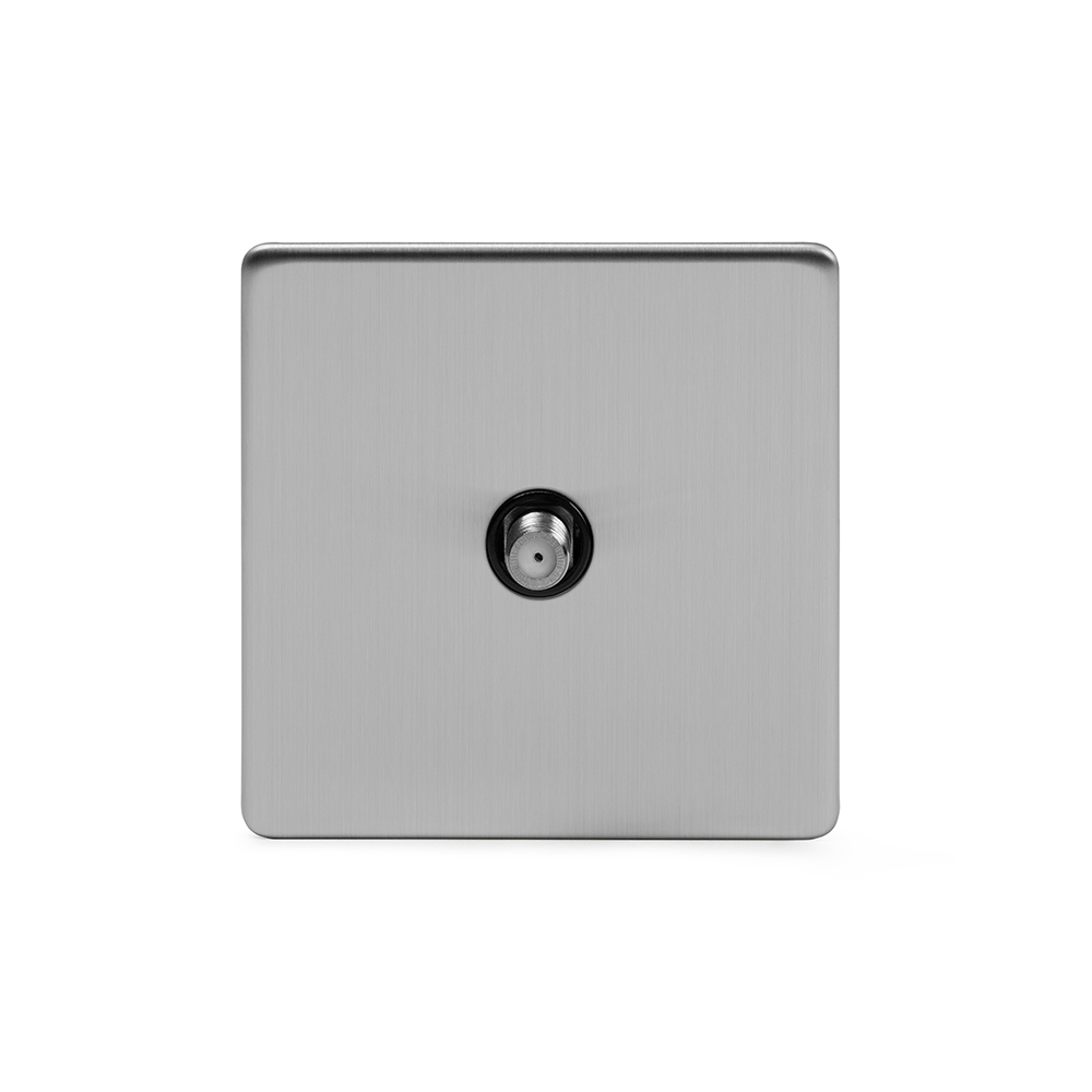 Soho Lighting Brushed Chrome 1 Gang Satellite Socket Blk Ins Screwless