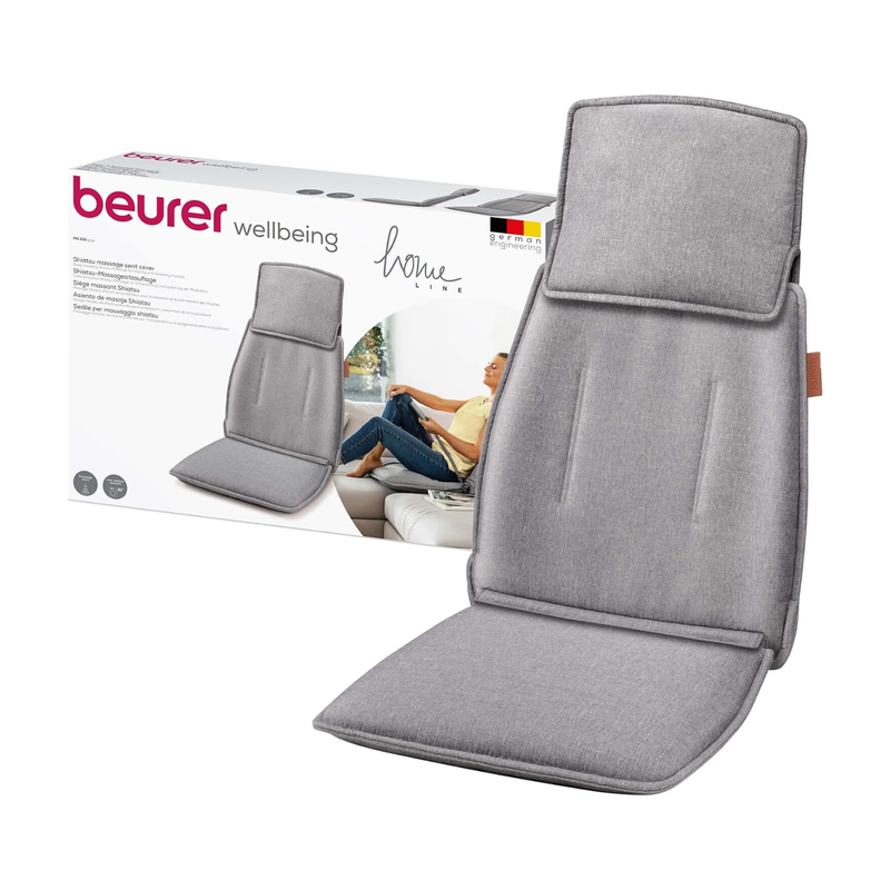 Beurer MG 330 Shiatsu-Massagekissen, 3 Massagebereiche und 2 Intensitäten, Tiefenmassage für Nacken, Ober- und Unterwirbelschale, Hand-Simulationsmassage im Nackenbereich, Grau