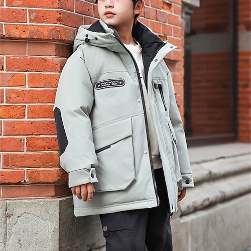 Kinder Jungen Daunenjacke Outdoorjacke Daunenjacke Oberbekleidung Einfarbig Langarm warm halten Winddicht Mantel Lässig Täglich Basic Schwarz Rote Grün Herbst Winter 5 Jahre