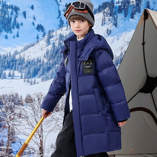 Kinder Jungen Daunenjacke Outdoorjacke Daunenjacke Oberbekleidung Einfarbig Langarm warm halten Winddicht Mantel Outdoor Täglich Basic Schwarz Rote Grün Herbst Winter Ab 4 Jahren