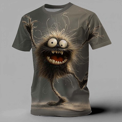 Novità mostro peloso con grandi denti e occhi da insetto maglietta stampata in 3D creatura eccentrica abbigliamento streetwear estivo da uomo abbigliamento s m l xl xxl xxxl