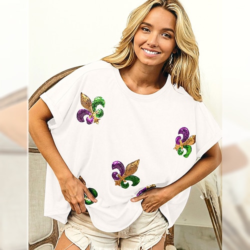 Per donna maglietta Cotone Pop art Con lustrini Carnevale Giornaliero Fine settimana Di tendenza Manica corta Rotonda Nero Estate