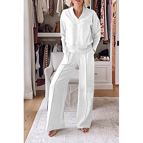Per donna Attivo Moda Camicie di cotone e lino Blusa Set di Pantaloni Manica Lunga Scollo a V Tinta unica All'aperto Weekend Nero Bianco Rosa Estate Vestibilità regolare