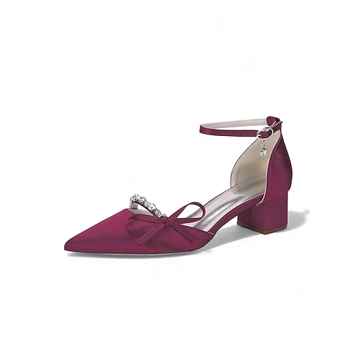 Burgunderrote Satin-Sandalen mit Blockabsatz und Schleife für Damen Strassdetails – elegante und bequeme Schuhe für Mütter, die an einer schicken Stadthochzeit teilnehmen