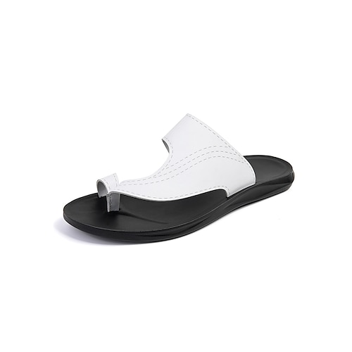 Sandali da uomo bianchi con anello per le dita, comodi e casual, ideali per resort e piscina, vacanze al mare, relax a bordo piscina, viaggi al mare, tempo libero estivo e stile vacanziero di tutti i giorni.