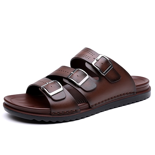 Per uomo Sandali Sandali Bassi Pelle PU Traspirante Confortevole Antiscivolo Mocassino Nero Marrone