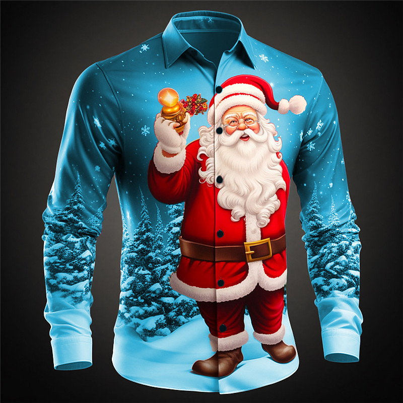Christmas Men's Santa Claus 3D Cartoon Human face Shirt Button Up Shirt Long Sleeve Funny Outdoor Holiday Spring Fall Turndown 3D Print Collared Shirts Red 1 Red Red 2
