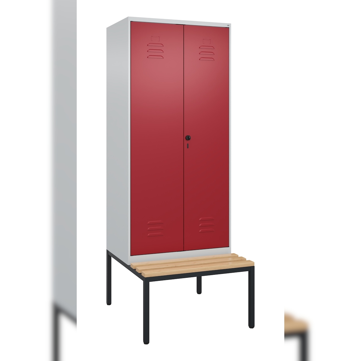 C+P Doppel-Spind Classic PLUS Buche untergebaute Bank 2 Abteile, Trennwand, HxBxT 212x80x82cm, Sicherheitsdrehriegel, Hellgrau/Rubinrot von PROREGAL
