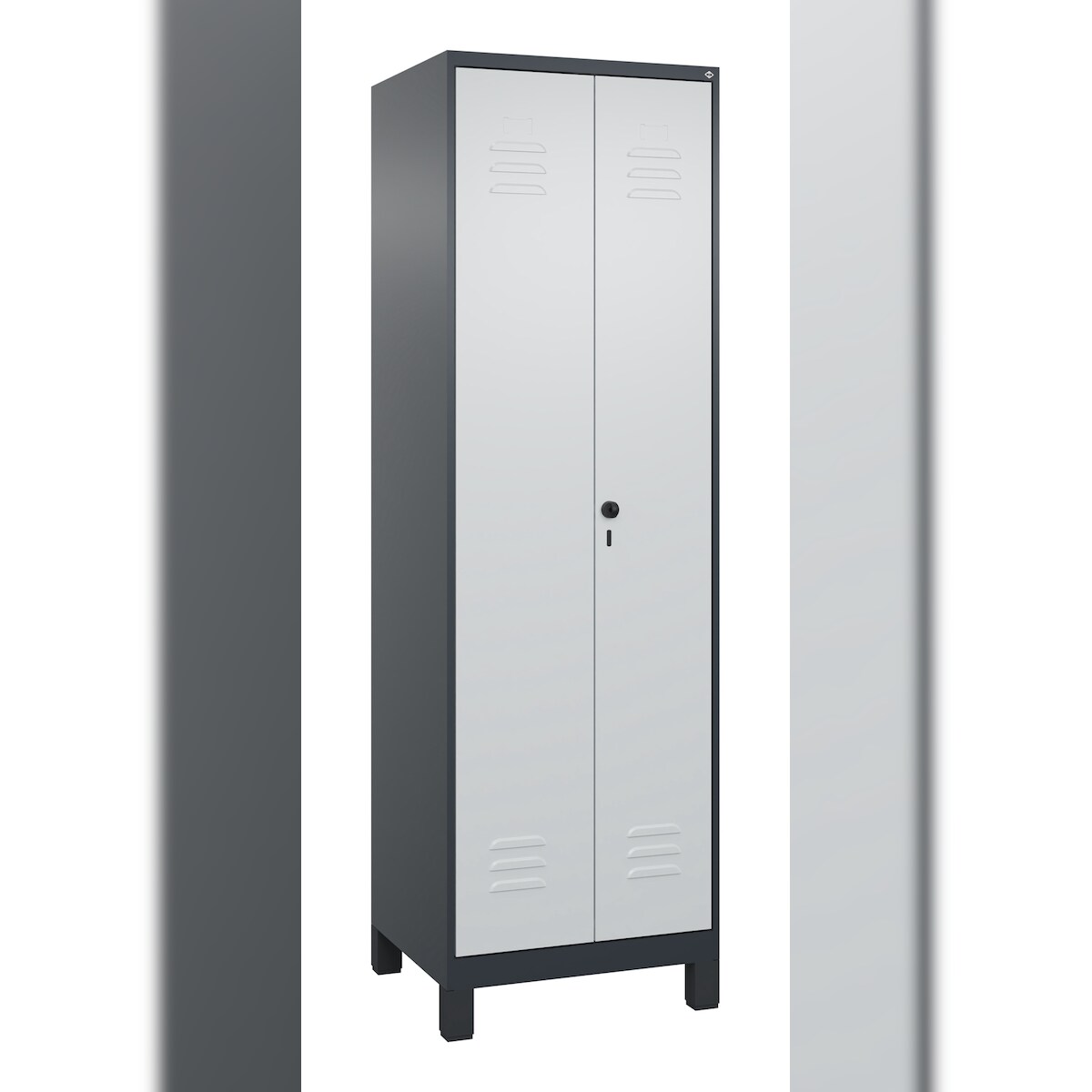 C+P Aufbewahrungs Doppel-Spind Classic PLUS, Füßen, 2 Abteile, HxBxT 195x60x50cm, Sicherheitsdrehriegel, Anthrazit/Hellgrau von PROREGAL