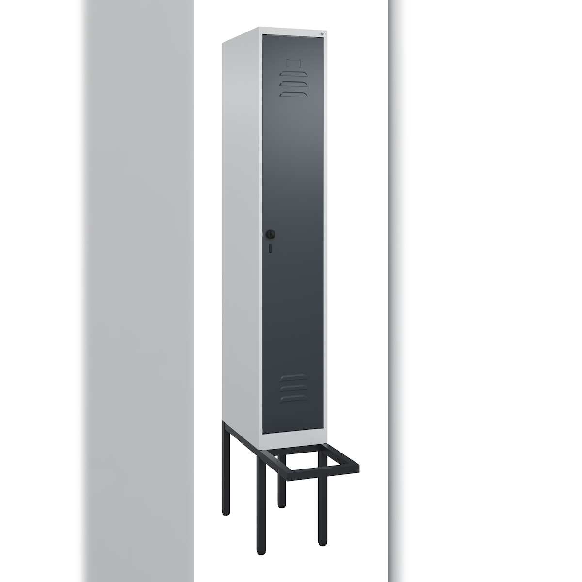 C+P Spind Classic PLUS, schwebender Sitzbank aus Buche 1 Abteil, HxBxT 212x30x82cm, Sicherheitsdrehriegel, Hellgrau/Anthrazit von PROREGAL