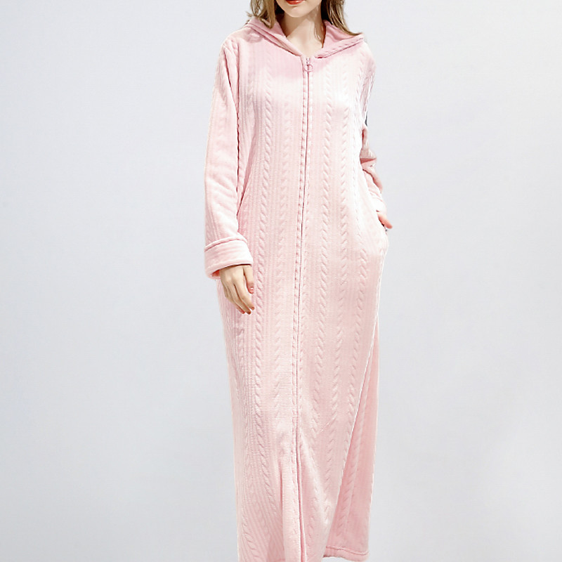 Women's Pajamas Robe Casual Pure Color Zipper Vacation Home Daily Long Sleeve Hoodie Pink Brown Gray Fall Winter Tailored Fit