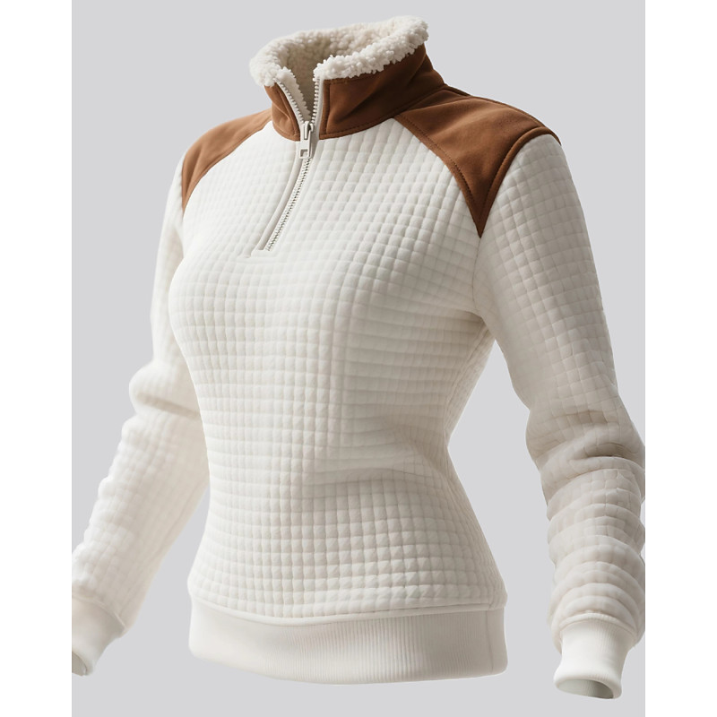 Women's Pullover Sweatshirt Color Block Casual Long Sleeve High Neck Regular Tops Street Holiday Patchwork Zipper khaki Beige Fall Winter
