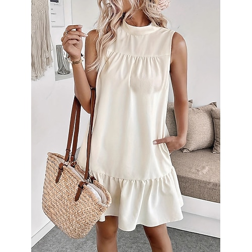 Per donna Mini Abito Finto cotone e lino Abito a Tubino Vestito Estivo Vestito Casual Elegante Moda Moderno All'aperto Vacanza Uscire Vestibilità comoda Semplice Senza Maniche Girocollo Bianco Estate