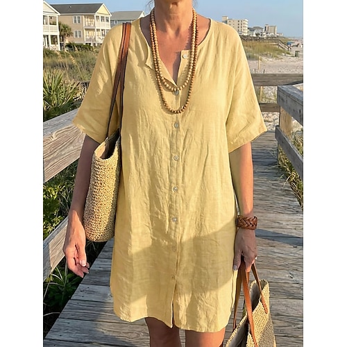 Per donna Abito al ginocchio Abiti in cotone e lino Abito a Tubino Vestito Casual Elegante Moda Moderno Quotidiano All'aperto Vacanza Vestibilità comoda Semplice Manica Corta Girocollo Bianco Giallo