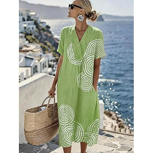 Per donna Abito Midi Vestito Estivo Abito a trapezio Vacanza Casual Spiaggia Spiaggia Feste Vestibilità comoda Grafico Geometrico Manica Corta Scollo a V Blu Viola Verde Cachi Estate Primavera