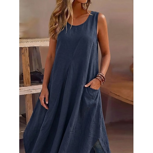 Per donna Abito al ginocchio Abiti in cotone e lino Abito a Tubino Vestito Estivo Vestito Canotta Moda Moderno All'aperto Vacanza Ferie Vestibilità comoda Semplice Senza Maniche Girocollo Verde